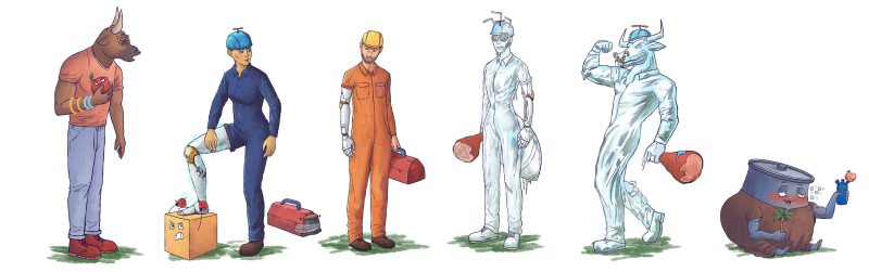 Nicht nur die Ideengebung war schwer, auch für unseren Illustrator Diego war die Arbeit unglaublich anspruchsvoll. In den meisten klinischen Bildern haben unsere Zeichner und Illustratoren keine spezielle Reihenfolge und Größe der Figuren zu beachten. In der Biochemie jedoch war es anders: die Position und die Größe der Charaktere spielten eine große Rolle. Schließlich musste die Reihenfolge der Reaktionen klar sein und die Enzyme mussten eindeutig an Position, Handlung oder Größe zu erkennen sein. Außerdem musste Diego abgefahrene Prozesse wie den oben beschriebenen illustrieren!